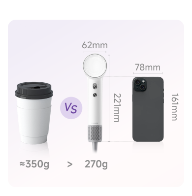 Dreame Mini High-Speed Hair Dryer offers strong performance in a compact design, weighing as light as a coffee cup. Its small size makes it easy to carry, making it ideal for travel, post-workout touch-ups, or quick styling.