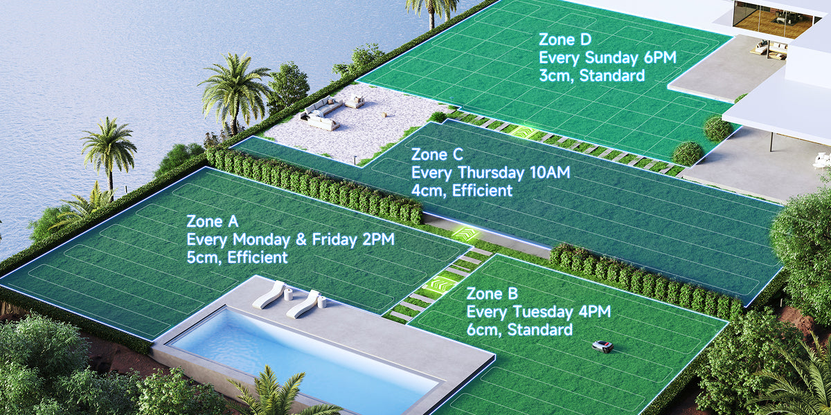 A2's innovative dual schedule feature is designed for varying seasonal environments and grass growth rates, which allows you to create and customize seasonal mowing schedules tailored to your lawn's condition.