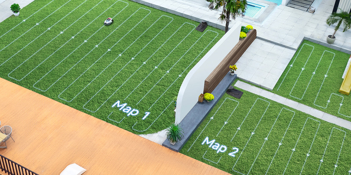 Perfect for homes with disjointed front and back yards, A2 allows you to create and manage 2 independent maps. Customize distinct mowing plans for each area, saving you time and eliminating the need for an additional mower. It is also ideal for owners of multiple properties.