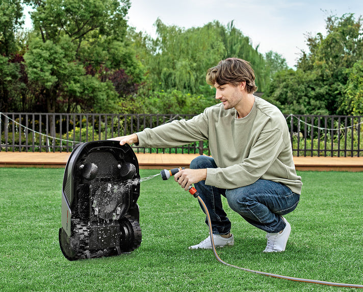 With an IPX6 waterproof rating, you can easily rinse the the exterior and bottom of the robot mower.