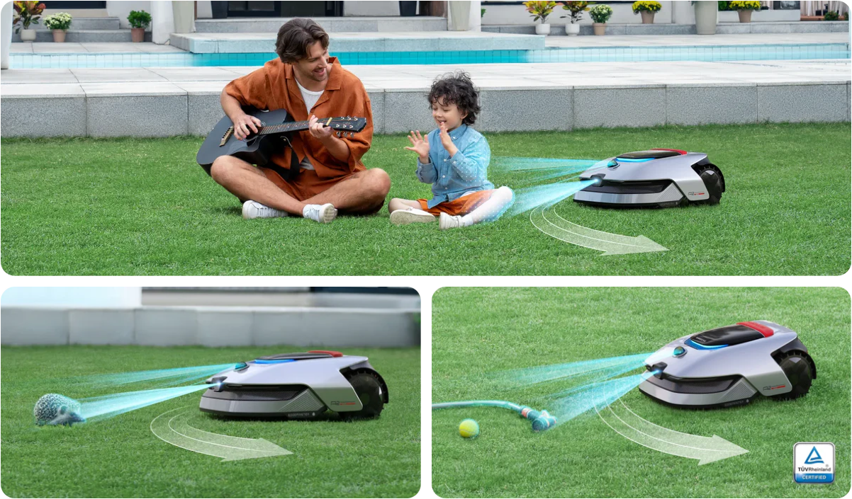 Harnessing the power of 3D point cloud data and AI vision technology, A2 can identify and avoid a wider variety of yard items, even smaller ones. Continuous algorithm updates enhance its object recognition and obstacle avoidance, offering multi-layered safety for your family and pets.