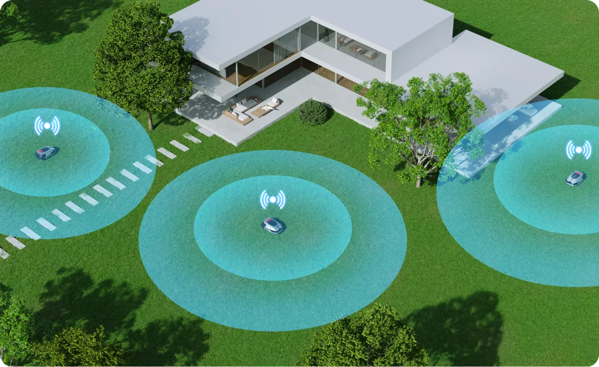 A2 enhances its environmental awareness by integrating a 3D high-precision LiDAR sensor with a front-facing camera utilizing advanced visual intelligence algorithms. This combination allows A2 to automatically navigate and position itself across yards as large as 3,000m², instantly constructing 3D maps for efficient and effortless mowing.