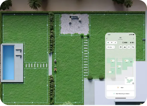 Using the Dreamehome App, define no-mow areas, such as swimming pools and yard facilities. A2 intelligently avoids these designated zones for a smooth mowing experience.