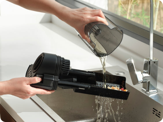 The easy-to-empty filter container separates solid dirt from liquid waste, making the final cleanup quick and convenient.