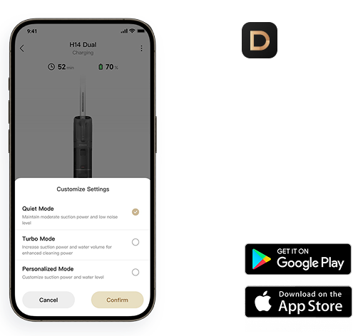 Custom SettingsAdjust suction power and water flow to your needs and floors.