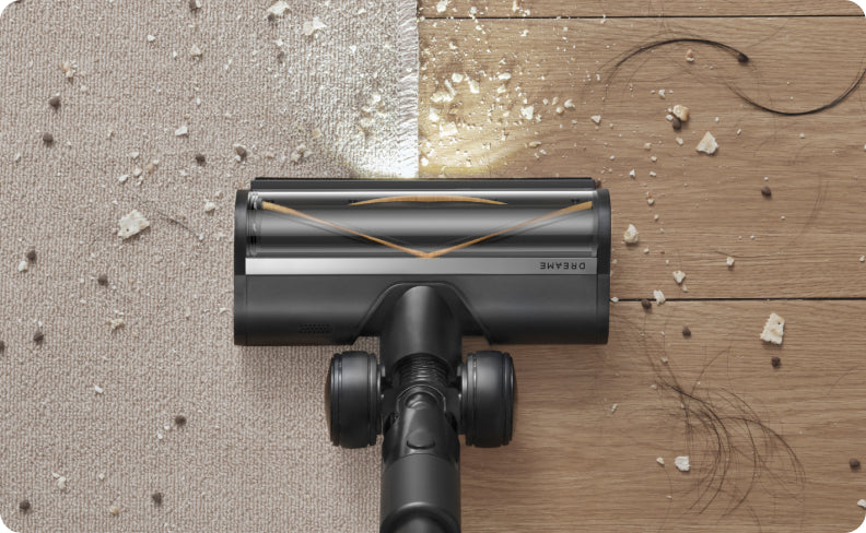 The LED headlights brighten up dark spaces, allowing you to notice less visible debris, especially light-colored pet fur, day or night.