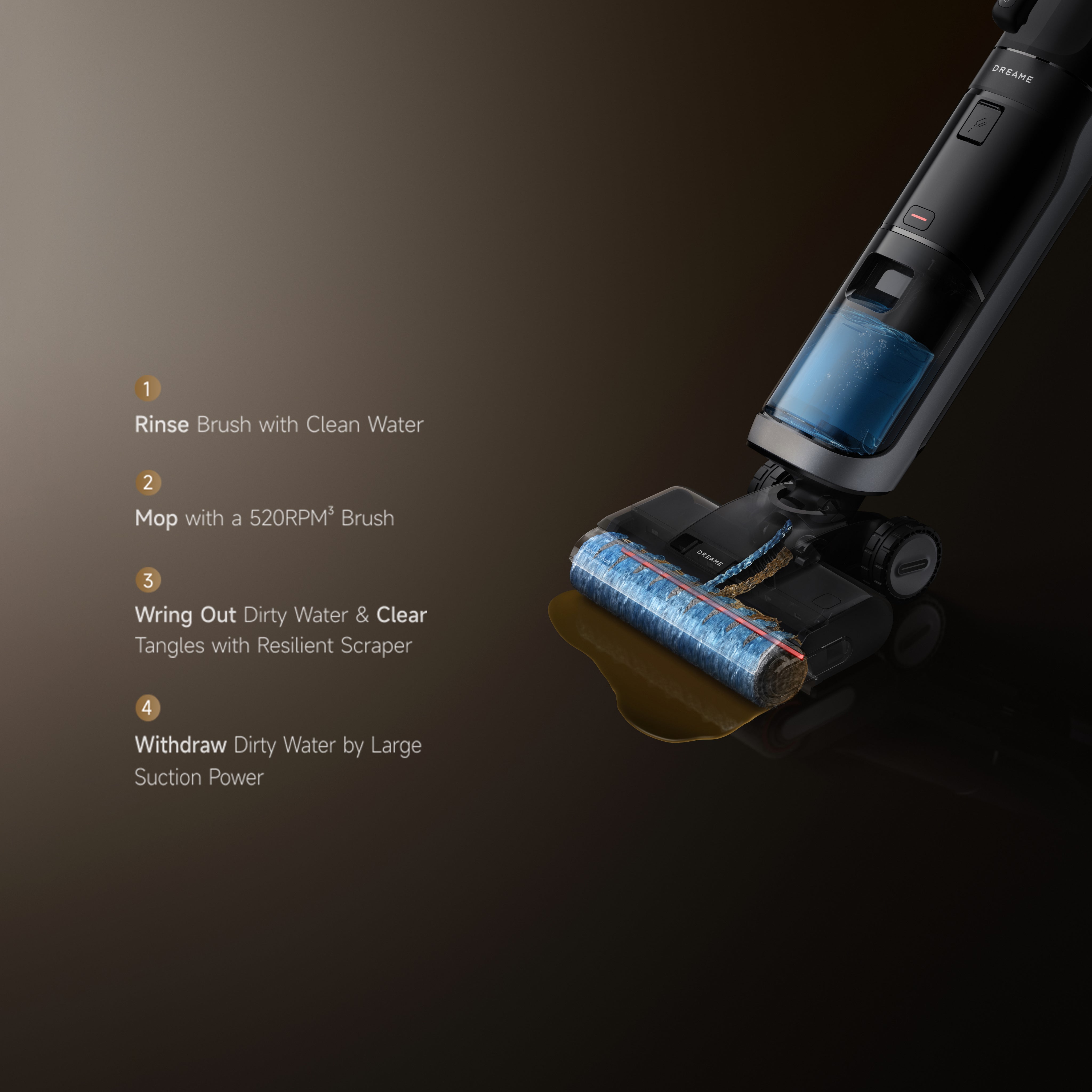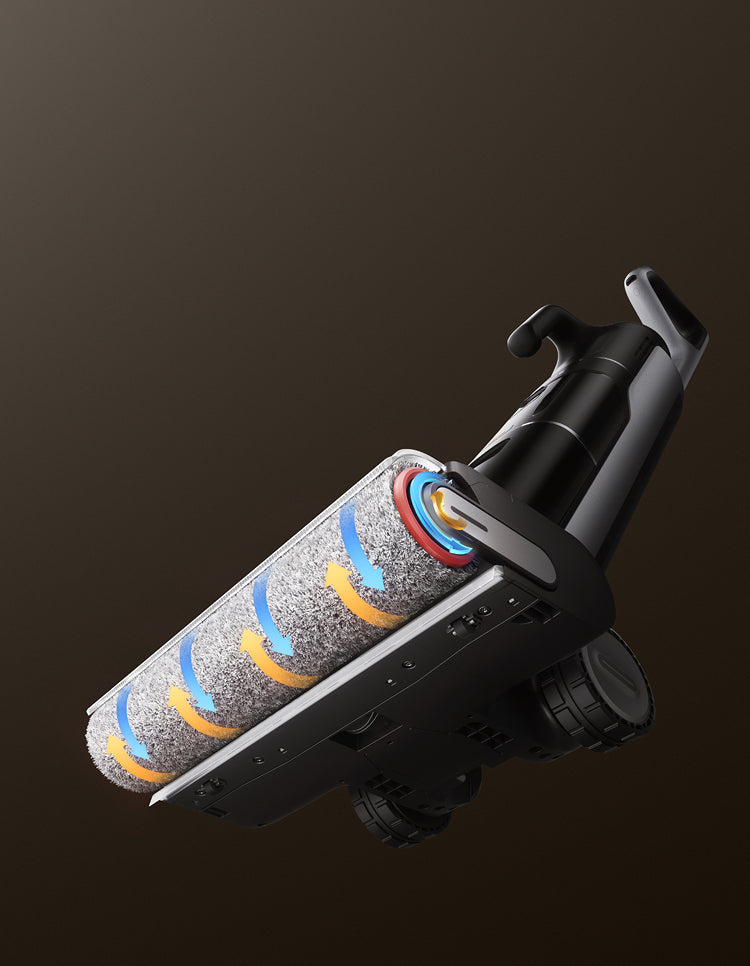 H14 Dual's dual-rotating brush emulates hand washing to wring out dirty water while simultaneously preventing hair tangles effectively - simplify your post-cleaning routine to just emptying the used water tank.