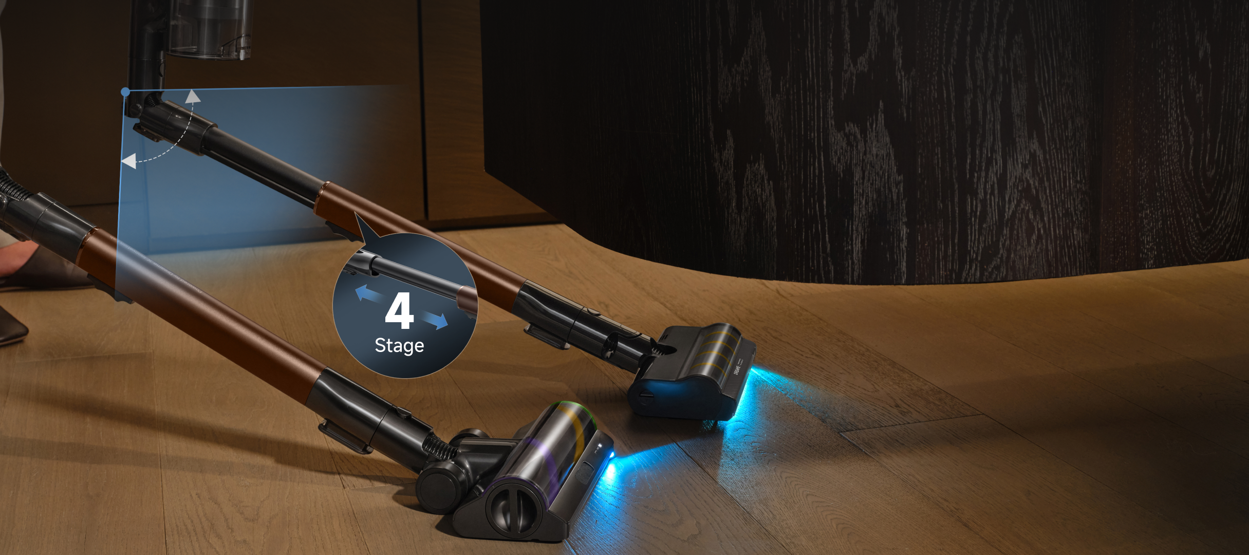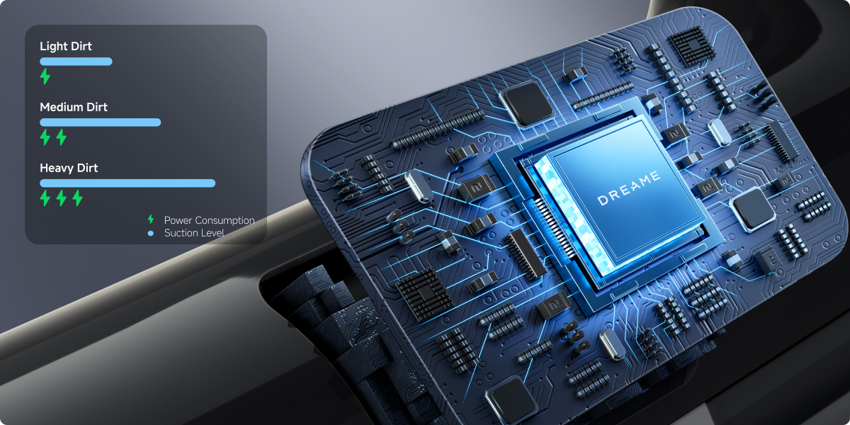 An integrated chip reacts accordingly and adjust suction power automatically.